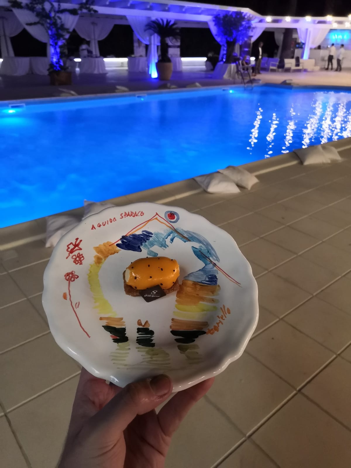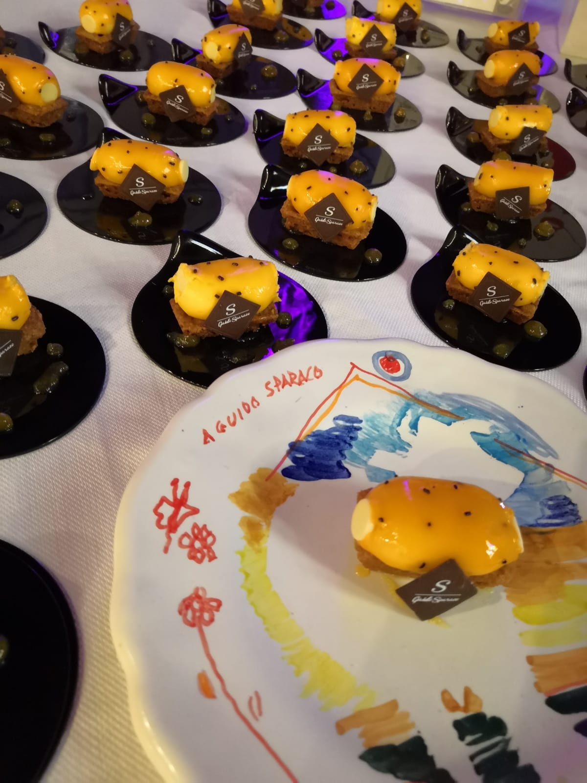 Utilizzando i frutti nella loro maturazione, ossia da fine agosto a fine settembre, abbiamo lavorato per ottenere una crema al fico d'India, seguita da un gelè dello stesso frutto. Successivamente abbiamo dato forma al dolce in questo modo: lo abbiamo glassato con una glassa arancione e posato su un crumble alle mandorle.